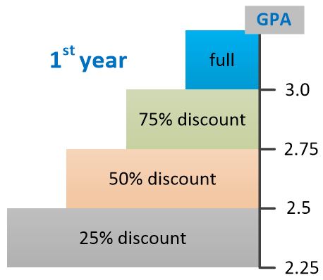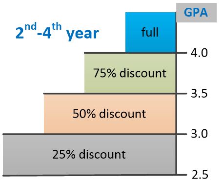 | แนวทางการให้ทุน ผู้ผ่านการคัดเลือกจะได้รับส่วนลดค่าหน่วยกิตในชั้นปีที่ 1 ตามเกณฑ์ต่อไปนี้