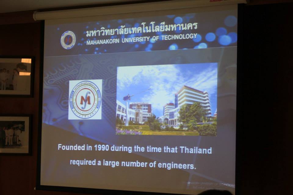 International Programme at Mahanakorn University of Technology was visited by Mr.Kim Kyung-Youb, Senior General Manager, Head of International Affairs Team, Office of International Affairs and Mr.Sean Park, Manager, International Affairs Team, Office of International Affairs, University of Ulsan. The two universities are looking forward to working in collaboration on Mechanical and Automotive Engineering and Electronic and Electrical Engineering courses.